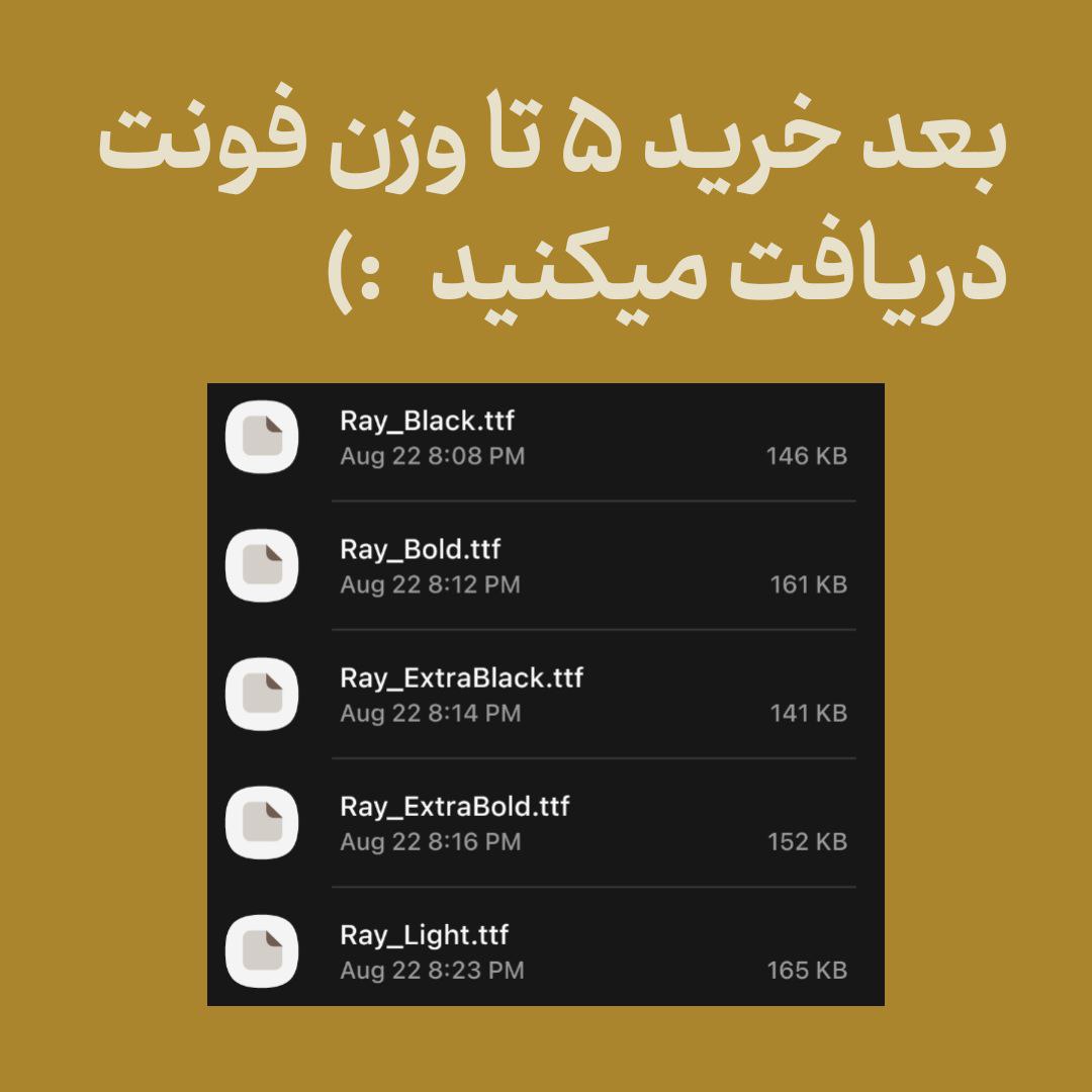 تمامی پسوند های فونت ری پس از خرید تحویل خواهد شد، بدون هیچ کم و کاستی!